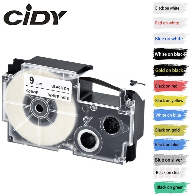 Multicolor of XR-9WE compatible Casio 9mm label tape XR9WE XR 9WE XR-9X XR-9YW XR-9BU XR-9GN XR-9RD for EZ Printers ribbon cartidge kl-60l kl-120-l