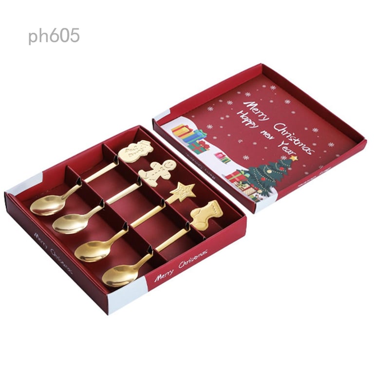 4PCS Stainless Steel Spoon Set Coffee Ice Cream Dessert Tea Spoon Stirrer Kitchen Tableware | Christmas Gift Box Set Low-priced Goods
