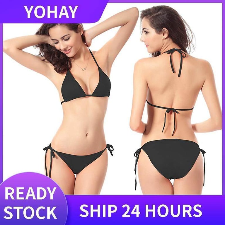 Pick me up Shop Hot Women Fashion Swimming Suit Solid Color Two-piece Strap Backless Beach Bikini Swimwear Bathing Bikini Set Bra Push-up Suit