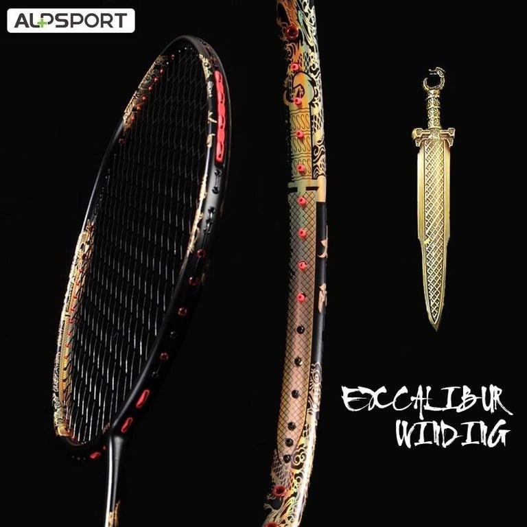 ALP TAJ 4U 35Lbs 7mm G5 Powerful Excalibur Golden Dragon Badminton Racket With Secondary Reinforced Full Carbon Fiber Reket Pro Offensive Single Training Raket With Gift Box