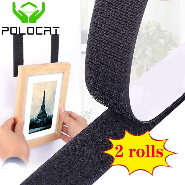 Polocat 2 roll/pack Self-adhesive Velcros,Black White Hook and Loop Self Adhesive Fastener Tape Magic Nylon Sticker Loop Disks Strips Velcros with Glue