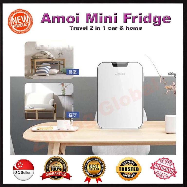 Mini Fridge Refrigerator 8L Cooling Heat Car Cosmetics Portable Fridge Refrigerator-SG safety mark 3 pin adapter Amoi 6L Mini Fridge - Single Door Refrigeration, Compact Appearance Mini Fridge for Students 8L (Local SG Seller)