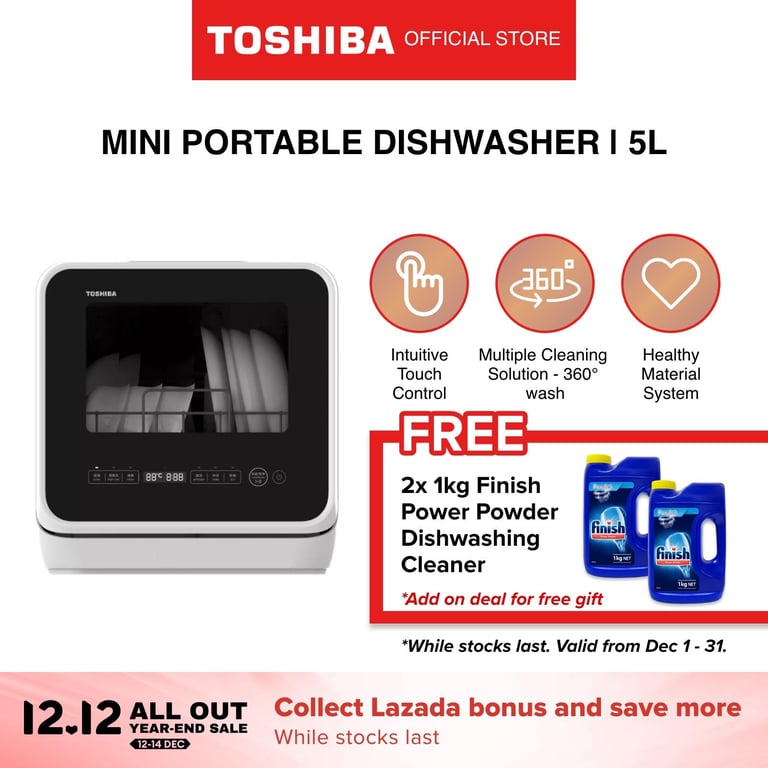 Toshiba DWS-22ASG(K) Black Multiple Purposes Portable Dishwasher, 5L