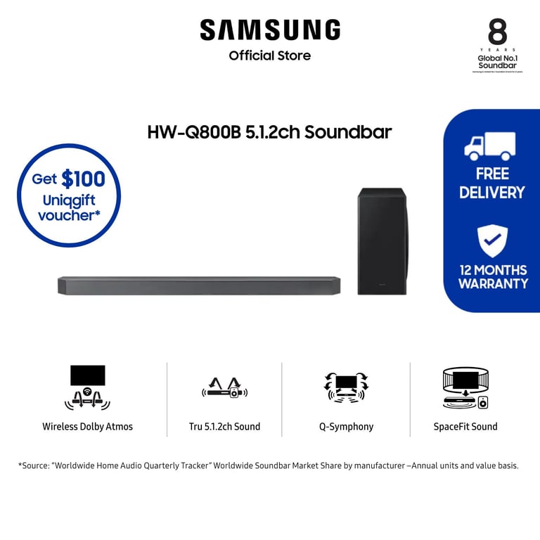 [Bulky] Samsung HW-Q800B/XS 5.1.2ch Soundbar (2022) / 12 Months Warranty