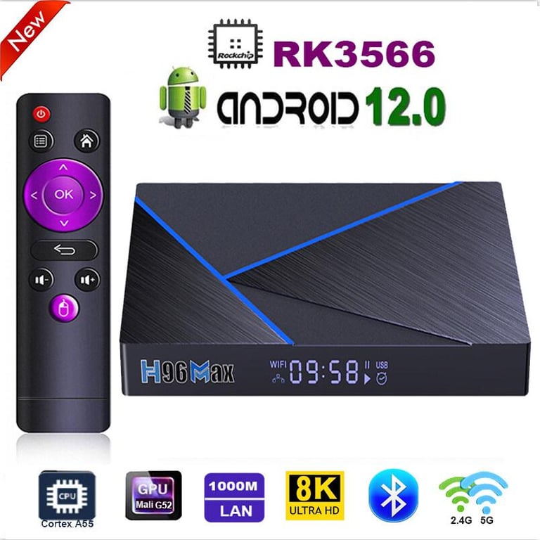 H96 MAX V58 Android 12.0 TV Box RockChip RK3588 Quad Core Cortex A76 DDR4 8K HD 60fps VP9 2.4G&5G WiFi6 Bluetooth 5.0 4GB 8GB 32GB 64GB 1000M Ethernet Smart Media Player Support Voice Assistant 2022 New Set Top Box