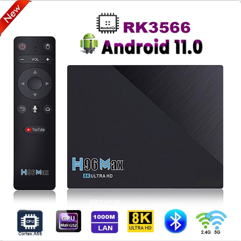 H96 MAX Android 11.0 TV Box RockChip RK3566 Quad Core Cortex A55 4K 8K HD 2.4G&5G Wifi BT4.0 1000M 4GB 8GB 32GB 64GB 128GB Smart Media Player for Youtube Support Google Voice Assistant H96max Set-Top Box