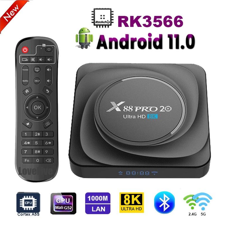 New X88 PRO 20 Android 11 TV Box RockChip RK3566 Quad Core 64bit Cortex A55 8K 4K HD 2.4G&5G Wifi Bluetooth 1000M 4GB 8GB 32GB 64GB 128GB Smart Media Player Support Voice Assistant Set Top Box