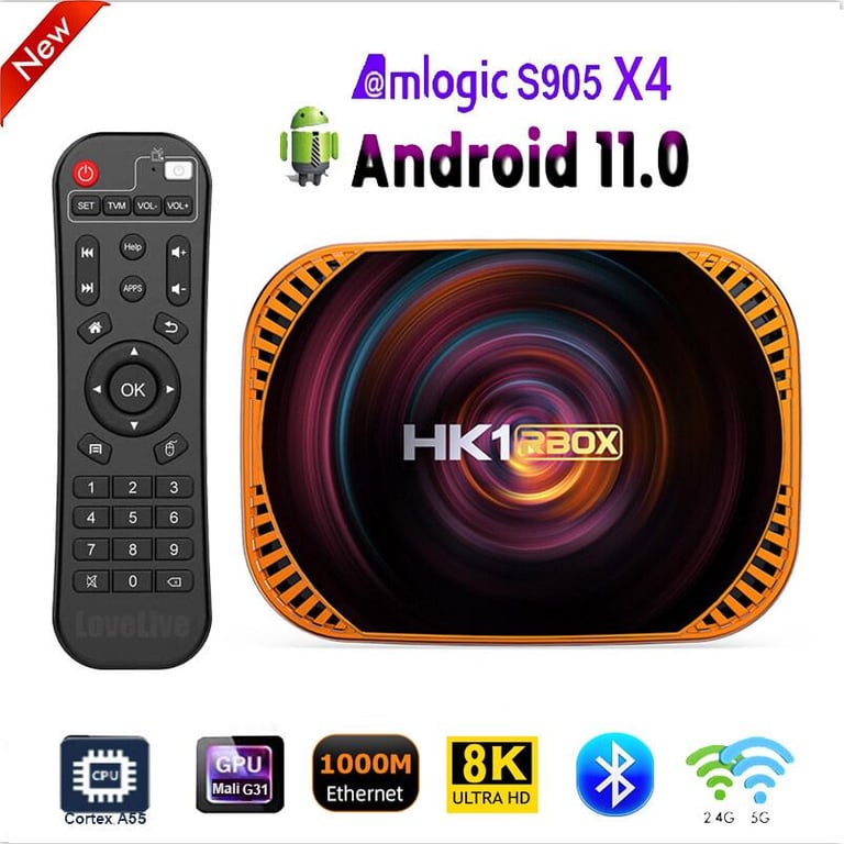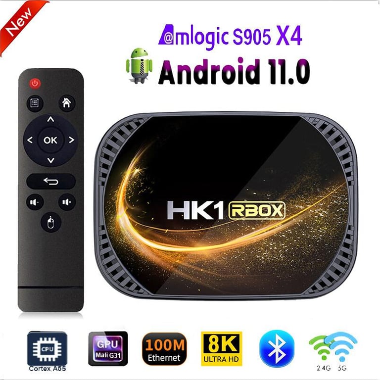 2021 New HK1 RBOX X4 Android 11.0 TV Box Amlogic S905X4 Quad Core Cortex A55 8K HD 2.4G&5G Wifi Bluetooth 4.1 4GB 32GB 64GB 128G 1000M Smart Media Player for Youtube Support Google Voice Assistant