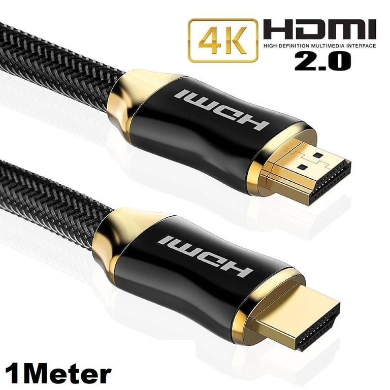 HDMI Cable 4K HDMI 2.0 4K 60Hz - 28AWG Braided Cord - High Speed 18Gbps - Gold Plated Connectors - Audio Return - Video 4K 2160p HD 1080p 1Meter