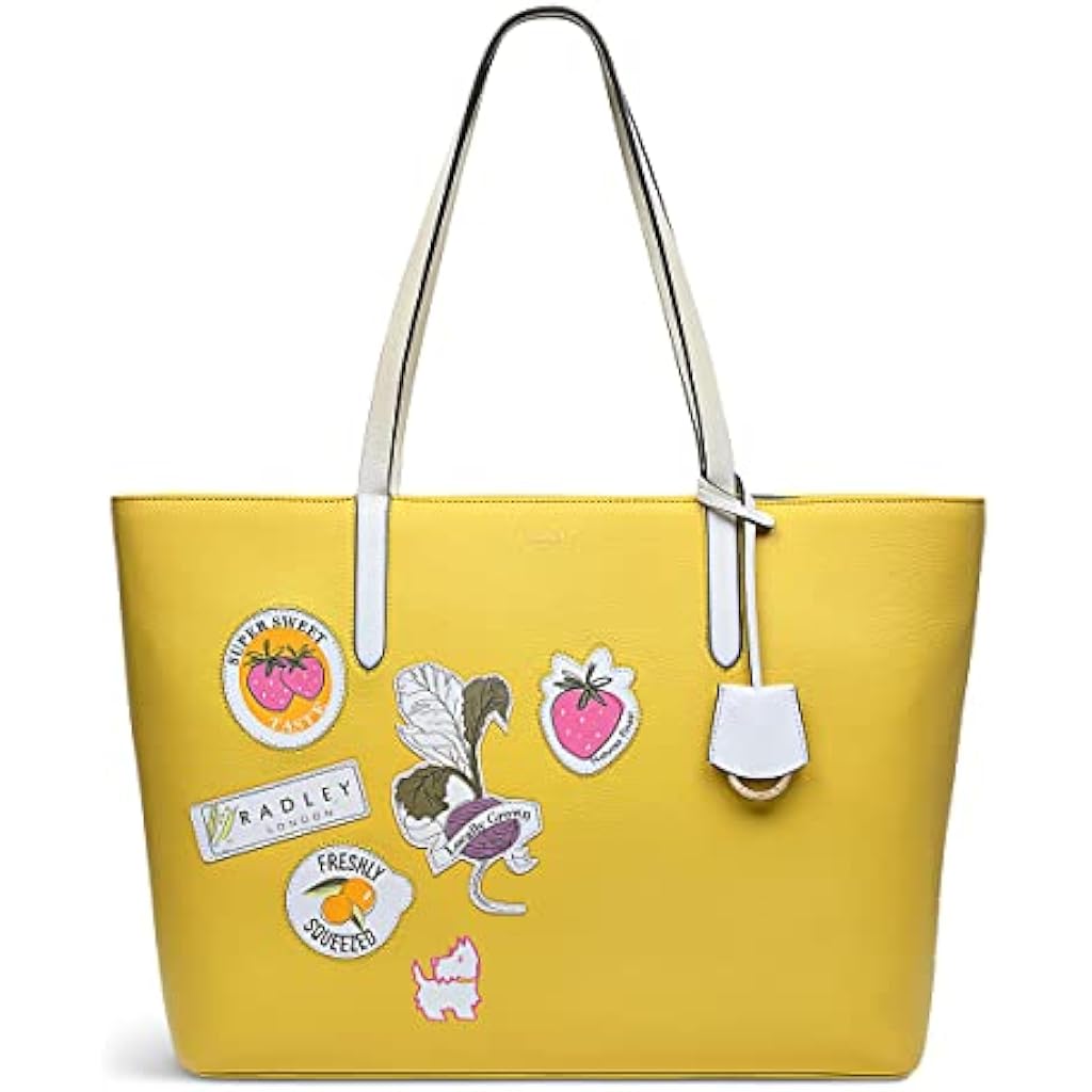 Large Leather Ziptop Tote Grab Shopper Shoulder Bag Lovely Jubbly in Yellow