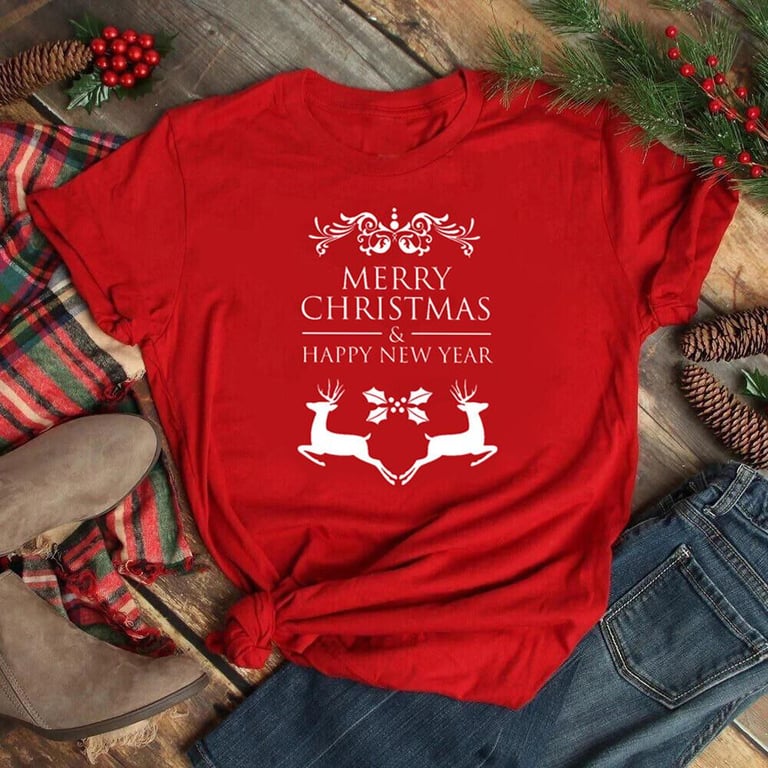 Merry Christmas Red Tshirt Fashion Women Tees Holiday Friendship T Shirt Teen Girls T Shirt New Year Tops Christmas Day Gift T恤女