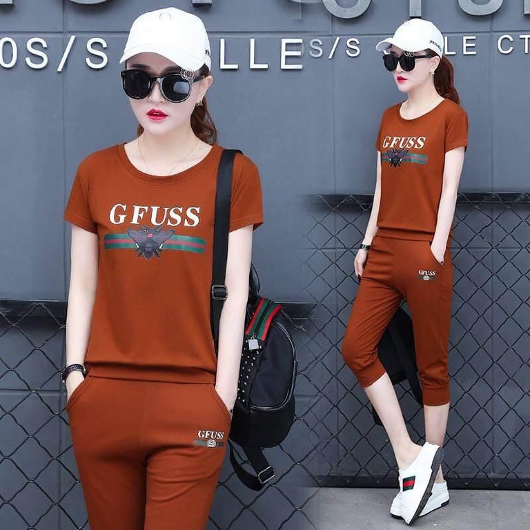 Cotton casual sports suit female summer Korean women's short sleeve + cropped trousers two sets