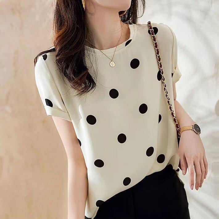 top women Dot Short Sleeved korean style top Ladies short t shirt women t shirts for Women Casual Fashion Fit Slim polka dot top female