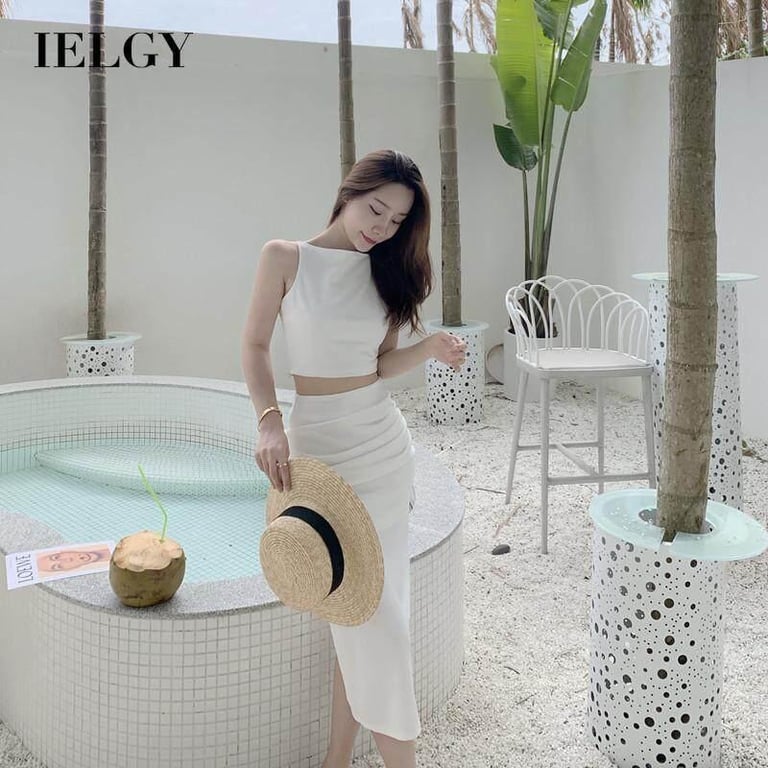 IELGY zipper photo suit spring Goddess fan fashionable all-match vest solid color vacation half-length skirt