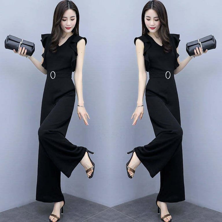 Hang Qiao Women's Fashion New Slim Casual V-neck Sleeveless Jumpsuit Jumpsuit Long Onesies