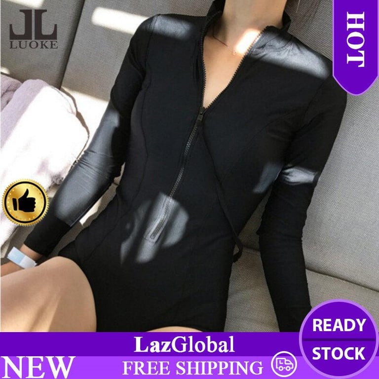 Luoke Swimming Suit One Piece Women Black New Casual Slim Sport Swimwear Korean Design Women's Long Sleeve Swimming Skirt Quick-drying Swimwear In Stock