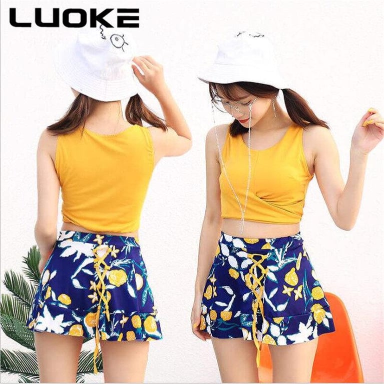 Luoke Swimsuit Free Shopping Two ways 3psc to wear red and yellow split skirt pants swimwear ins swimming suit women In stock