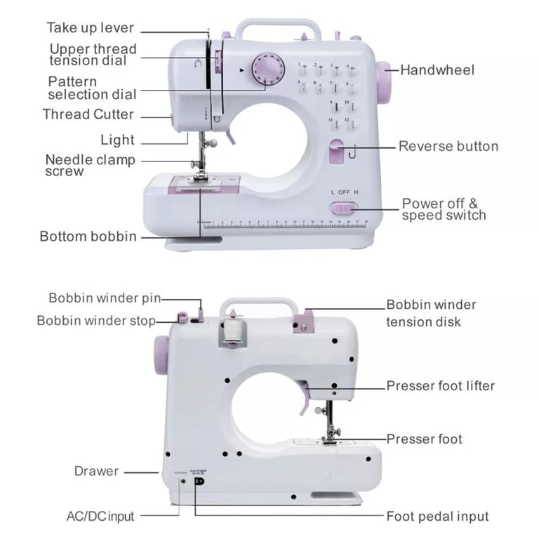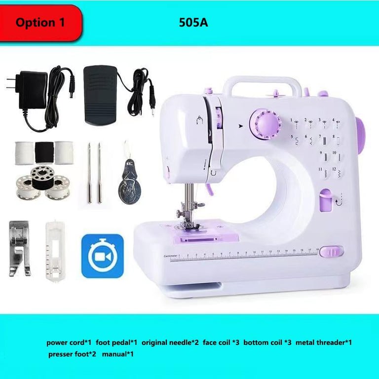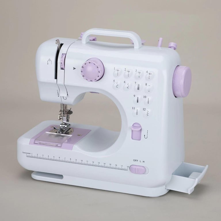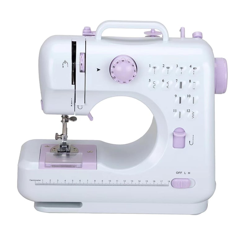 • This small household sewing machine is perfect for beginners, kids/children, girls, women or amateurs to meet different needs of DIY sewing. Design the pattern whatever you want to sew in textiles such as altering and creating clothing, crafting, pillow cover, bed sheet, home decor and more with using this sewing machine. Good for beginners and different speed to ensure the safety. Beginners can easily use it meet the needs of household sewing according to the instructions. With 12 built-in stitches, you only need to turn the gears to switch the stitches you need to your own fabric. Built-in carry handle, easy to carry ,it convenient for sewing whether you're at home or travelling.
