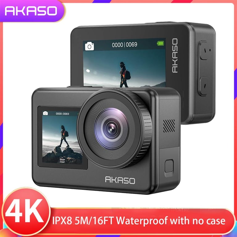 • 5M/16FT Waterproof Camera without Case: AKASO Brave 7 waterproof camera is waterproof to 16ft (5m) without case. It is ideal for extreme sports such as surfing, diving etc.