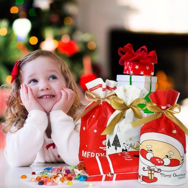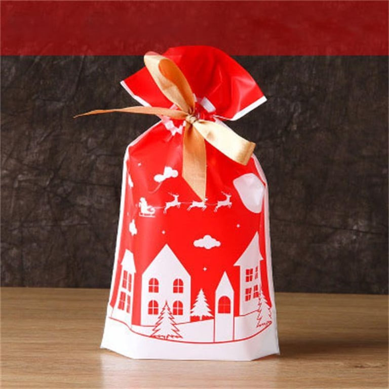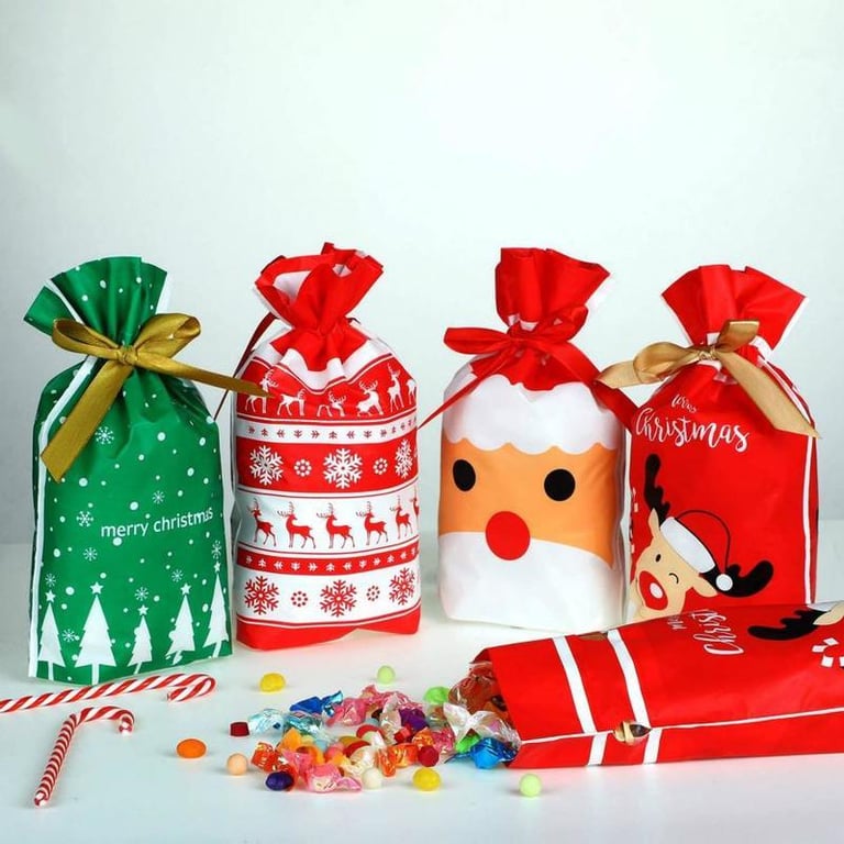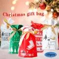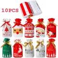 10pcs Santa Gift Pouch Candy Bag Snowflake Drawstring Bag Merry Christmas Decorations for Home New Year Noel Presents
