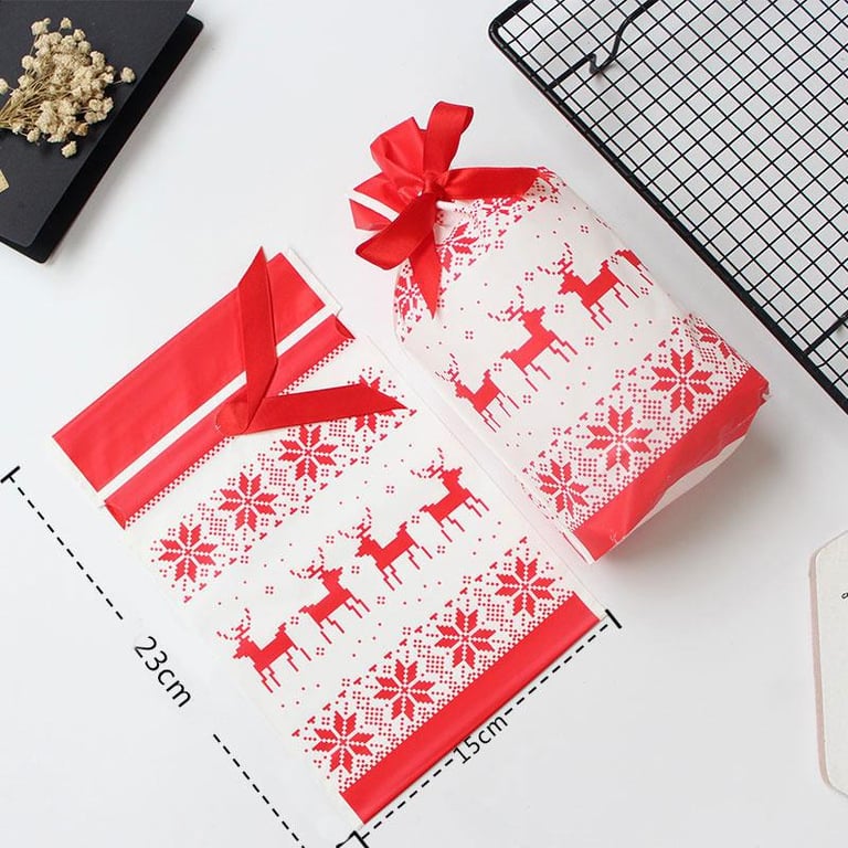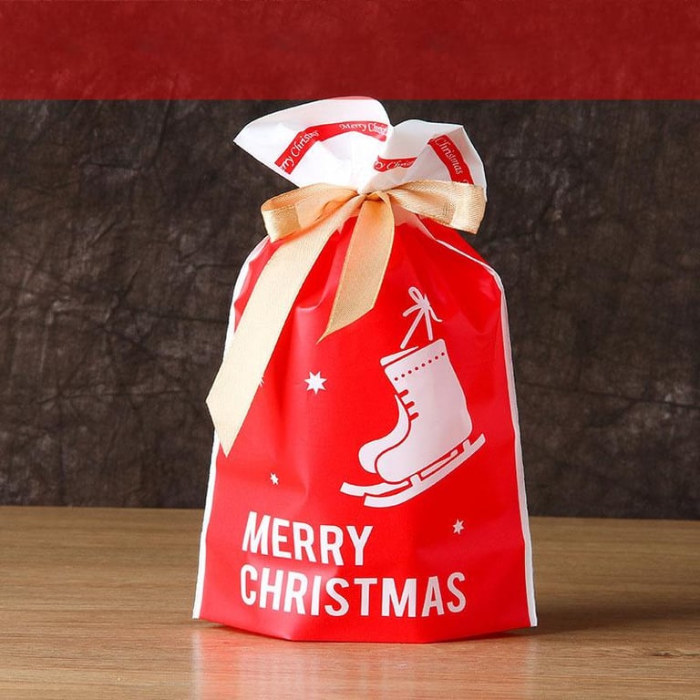 \r\nThis Christmas food packaging bag can contain about 400g of nougat and a number of candies. This style is a drawstring bag with ribbons, simple and simple in Japanese style.