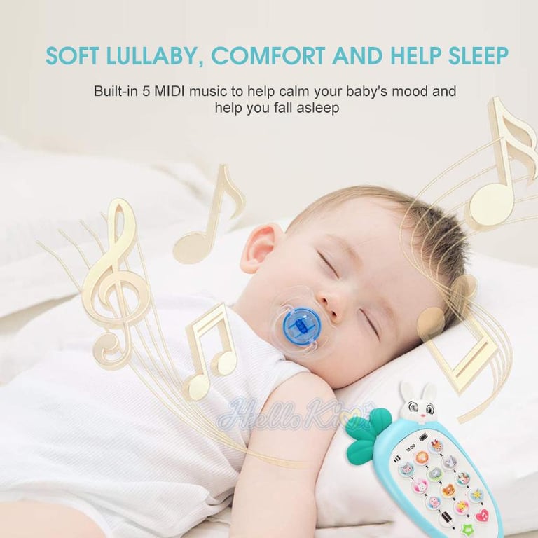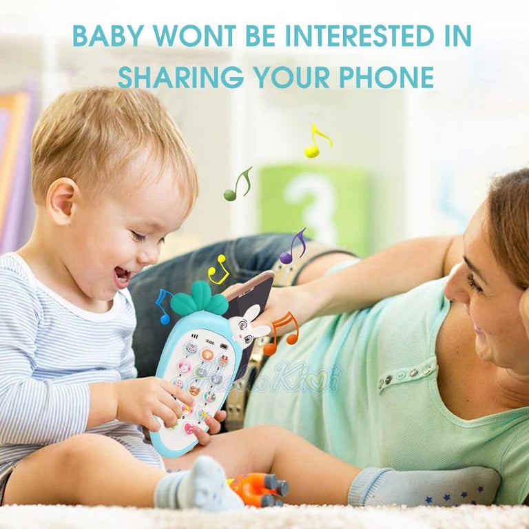 HelloKimi Baby Cell Phone Toy for Learning and Play Early Education Telephone with Silicone Cover Music Lights for 0-1 Year Old Kids with lanyard and 2 AAA batteries
