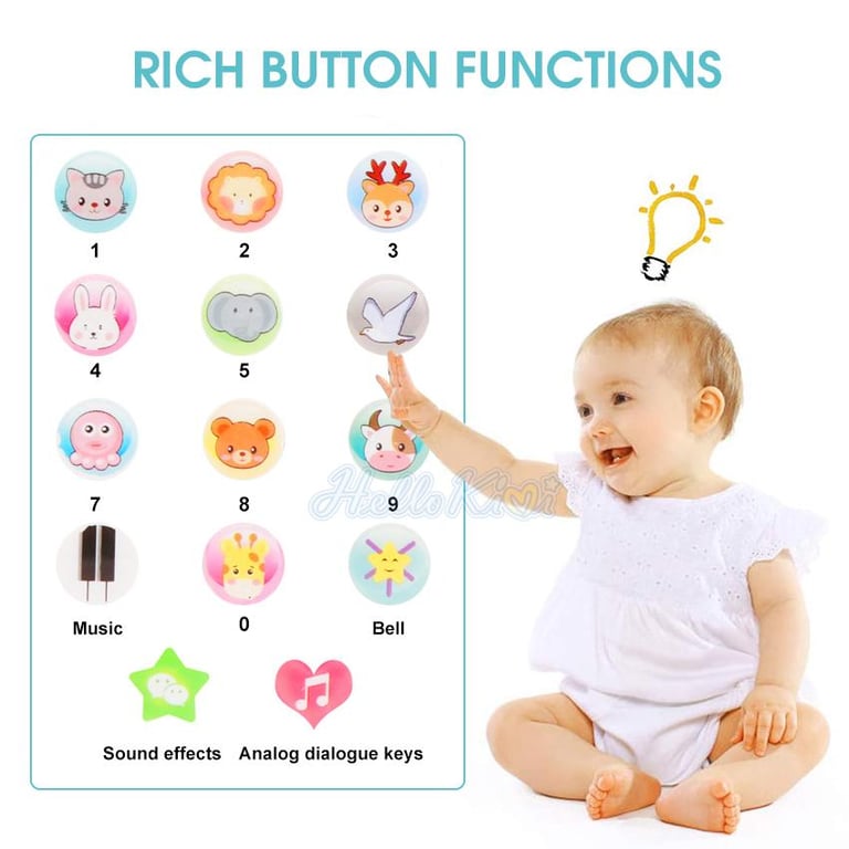 • MULTI-FUNCTION: Built-in 4 functions, light buttons, 9 sound effects, gentle volume protects baby's ears and an analog dialogue button. It is able to quickly establish the baby to the basic knowledge.