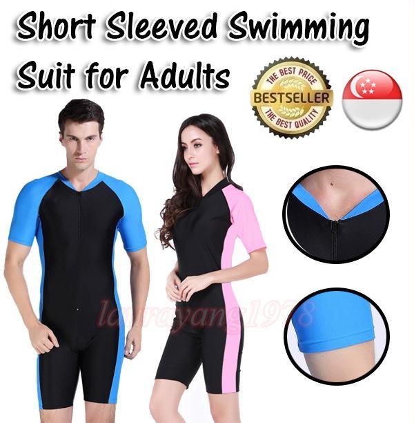 1pc Adults Swimming Suit Swimwear Swim Swimsuit Clothes Wear Costume Short Sleeve for Men Women Male Female, Onepiece Female Pink comes with Padding, One Piece Swimsuit Male Blue, One-Piece Sports Swimming Wear Woman Man