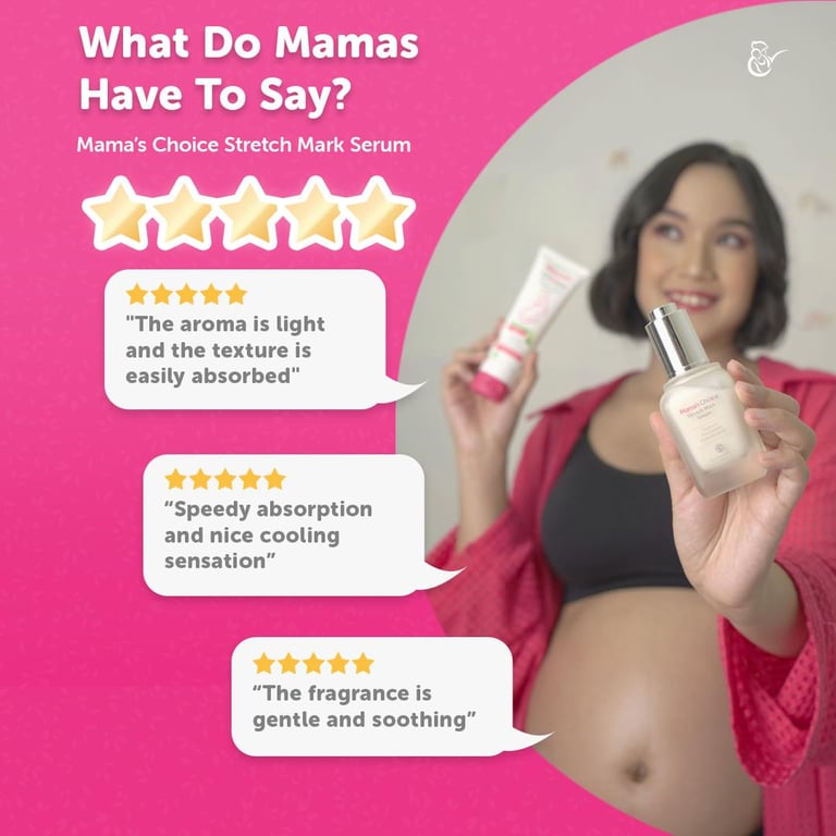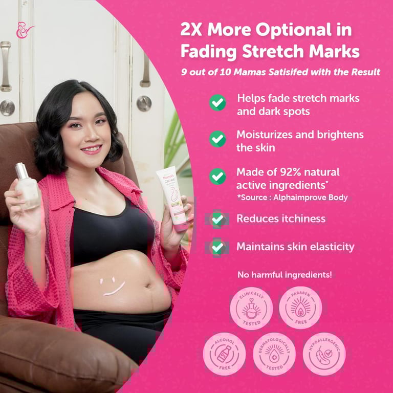 3️⃣ Complete with Mama's Choice Stretch Mark Cream to lock in skin moisture to reduce itching & maintain skin elasticity