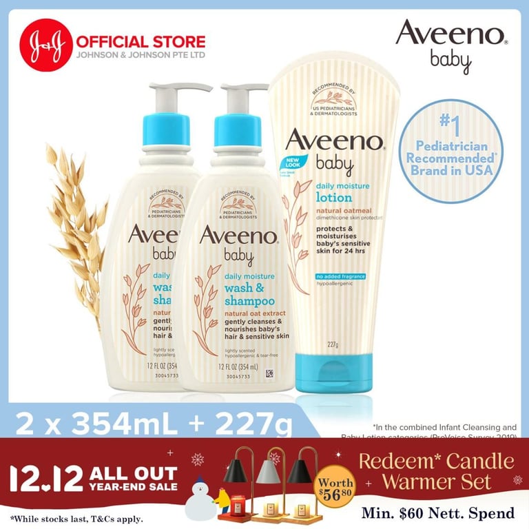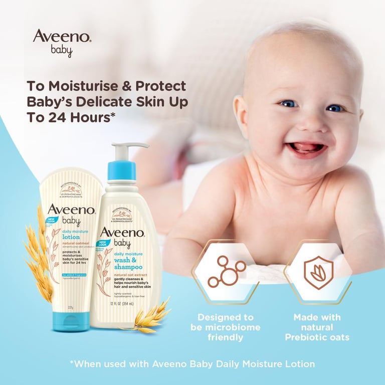 [Bundle of 3] Aveeno Baby Daily Moisturizing Body Wash and Shampoo 354ml x2 + Lotion 227g x1