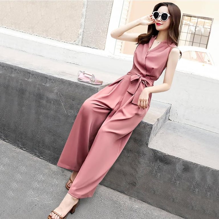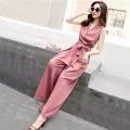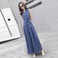 Jumpsuit Women's Spring and Summer Trousers High-waisted V-neck Foreign Style Sleeveless Cec Women's Clothing Elegant Fashionable Wide-leg Pants Trendy Jumpsuit