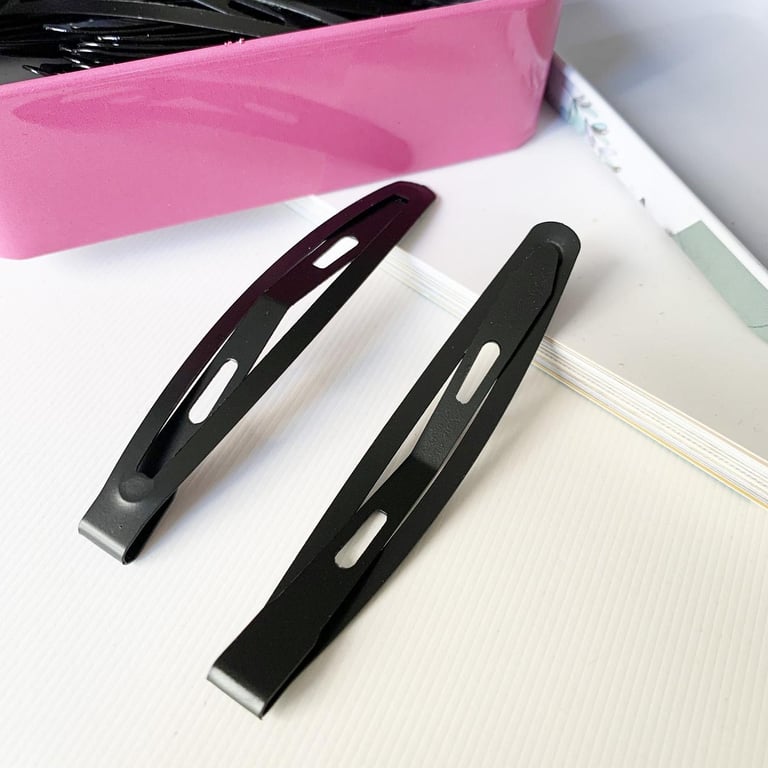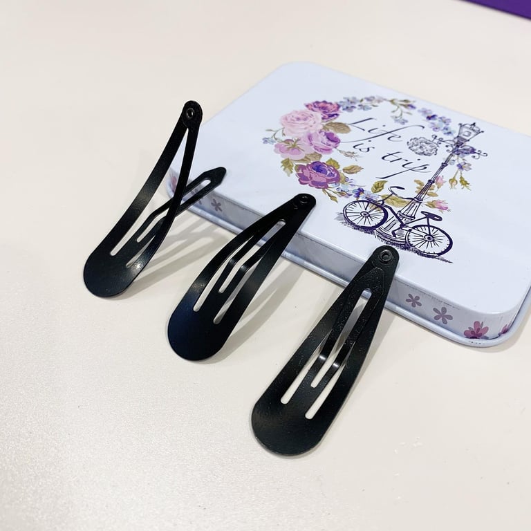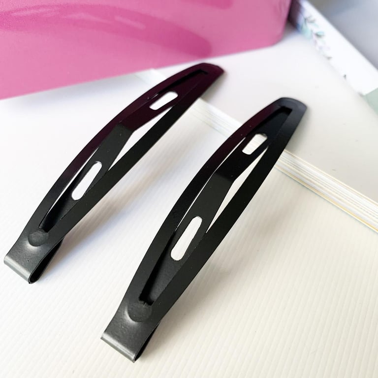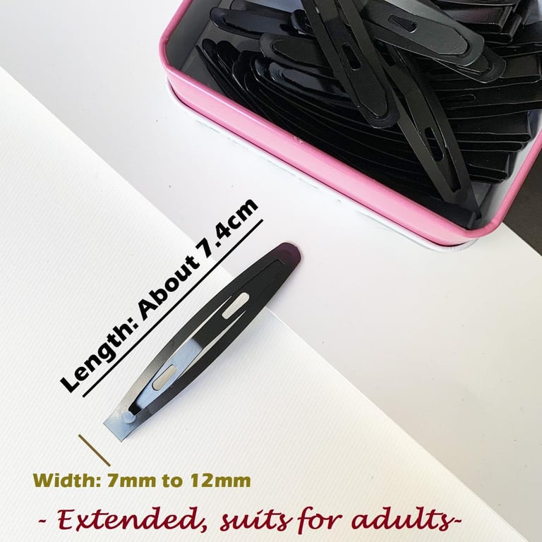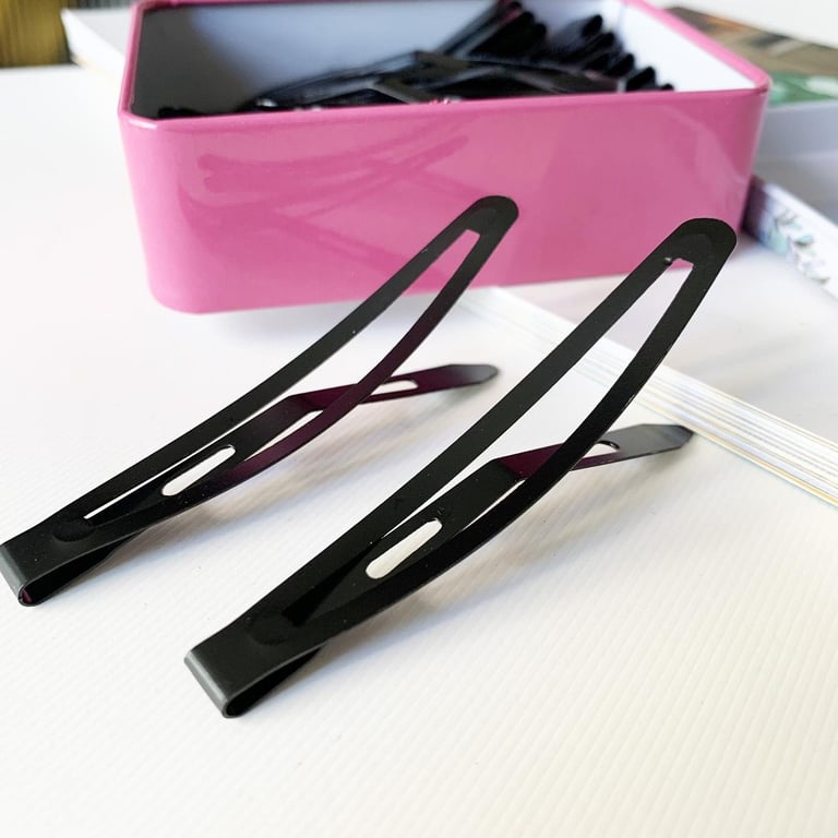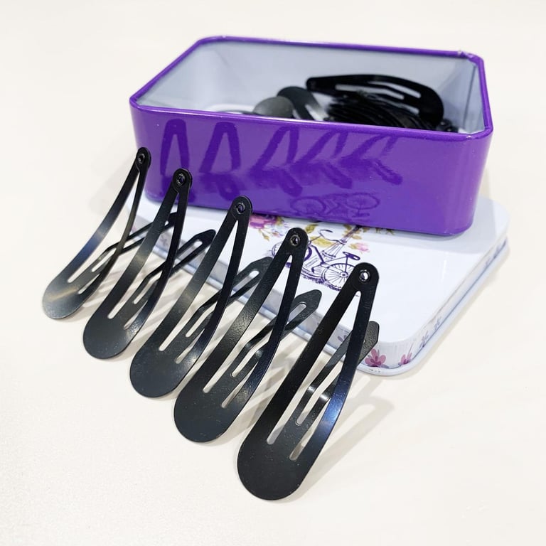 [SG | Regular & Extended Version] 30pc 7.4cm 5cm Matte Black Snapback Metal Hair Clips Pins Big Large Snap Hair Clips for Adult Women, Packed in Metal Box