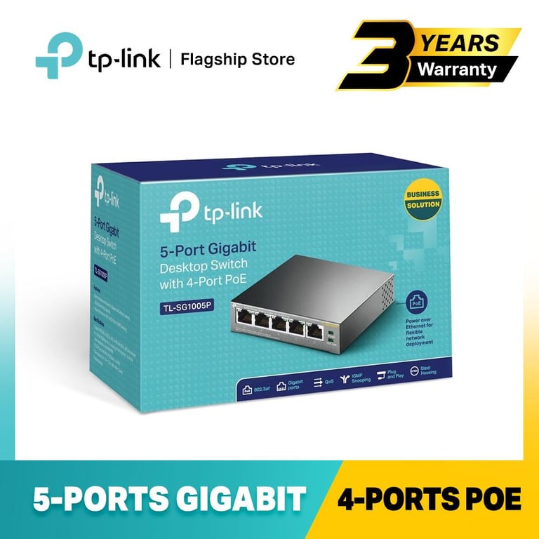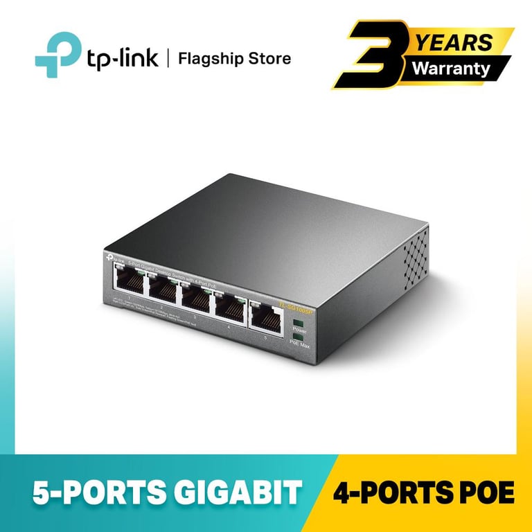 TP-LINK TL-SG1005P 5-Port Gigabit Desktop PoE Switch, 5 Gigabit Ports including 4 PoE ports, 802.3af, 56W PoE Power, Desktop Steel Case
