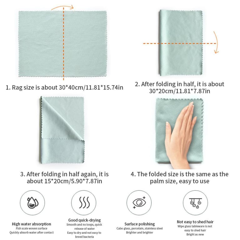 1.Strong absorbent, wipe the desktop, quickly dry.2.No water mark, lint free.3.Soft material, not scratch the surface.4.Best cleaning tools for kitchen, car, bathroom, bowl, dish, pot and so on.5.Using high-quality materials, durable, non-toxic and harmless.Size: Due to manual measurement, there will be an error of 1-3 cm.