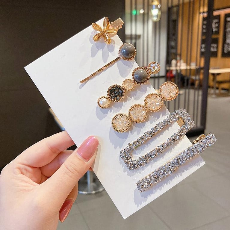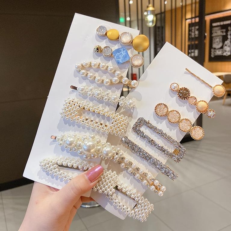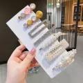 [ACC]4/8 Pcs Korean Pearl Shiny Gem Hair clip Ins Rhinestone Bangs Hairpin Set