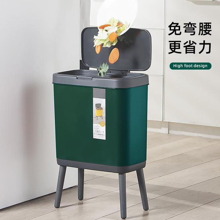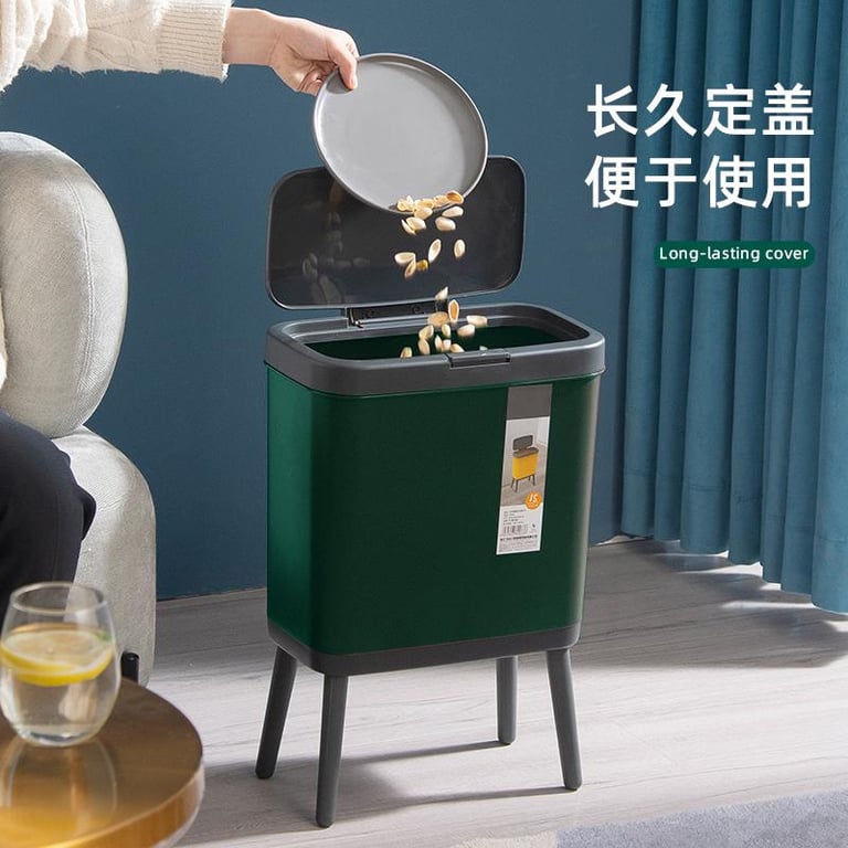 INS Style Push-down Type with Lid Household Living Room Toilet Wet and Dry Classification Kitchen Non-Bending High-Leg Trash Can Double Layer
