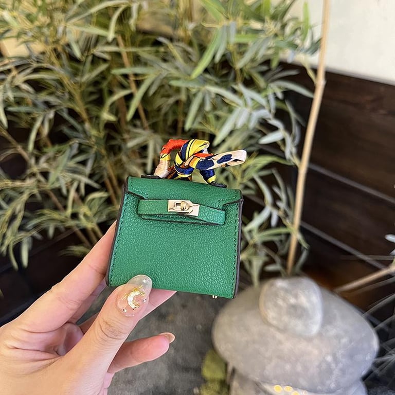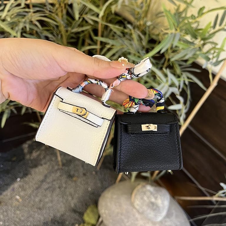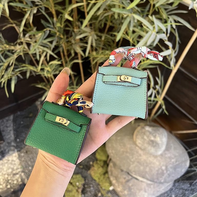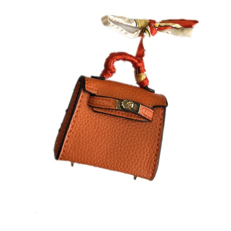 Cute Mini Kelly Bag Small Pendant Vegetable Basket High-End Leather Headset Storgage Bag Female Creative Car Key Chain Ornaments