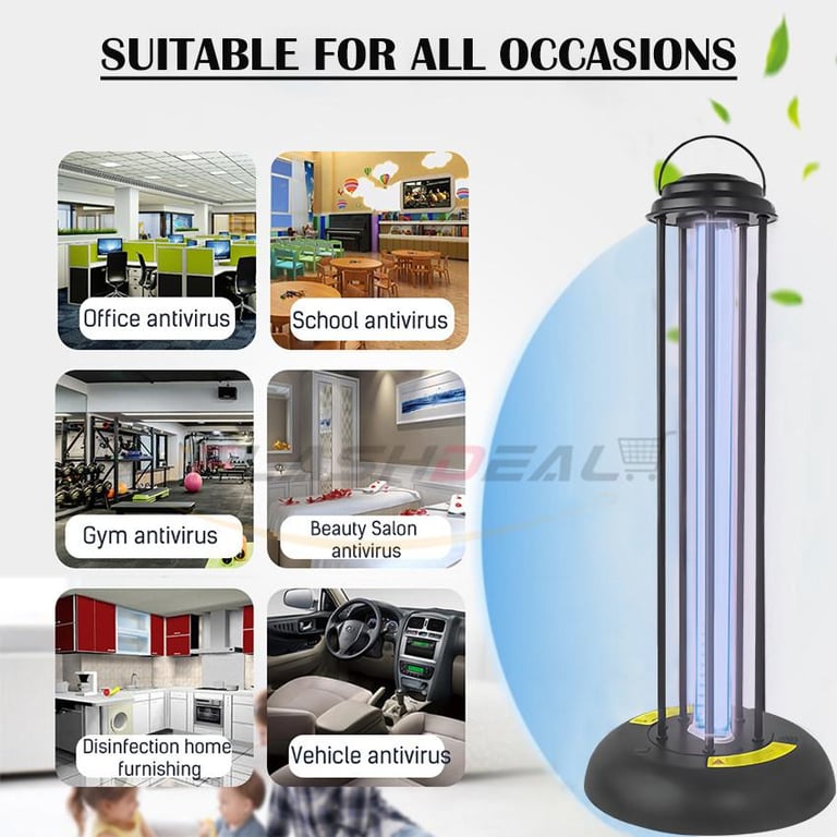 • Disinfect Effectively : Put the portable lamp anywhere you want and turn it on. It makes the environment safe within 30 minutes without damaging any surfaces