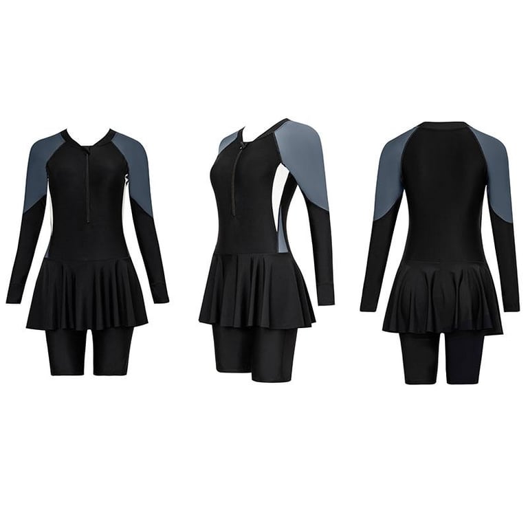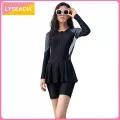 LYSEACIA Long Sleeve Sports Swimsuit Women Swimming One Piece Suit Large Size Swimwear Ruffles Beach Zipper Surfing Rash Guards M-5XL