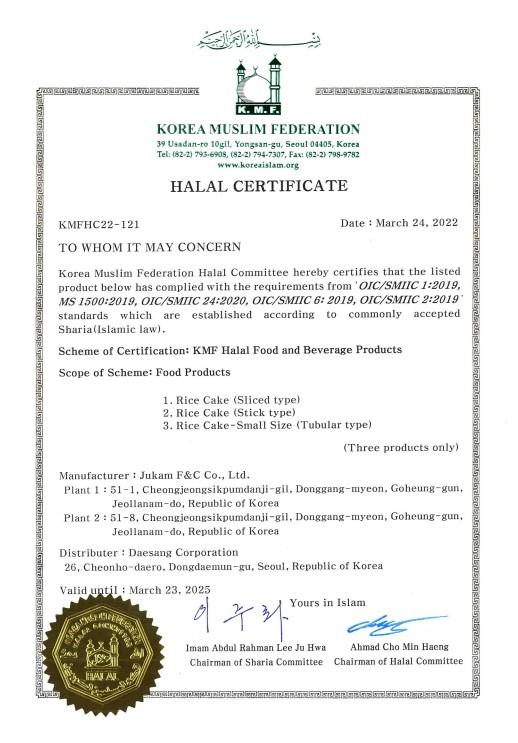 Daesang - Halal Jongga Stick Type Rice Cake 500g - Korean