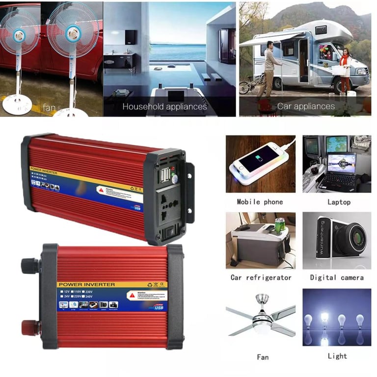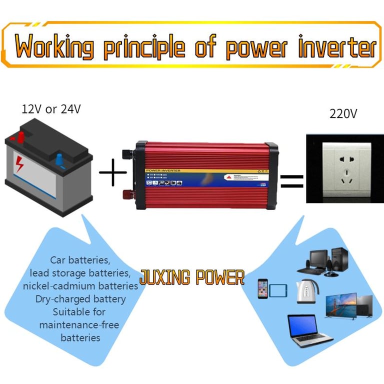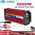JUXING 10000W/8000W/6000W Power Inverter Portable Converter, DC12V/24 to AC, With Dual USB, 220V Universal Socket Modified Sine Wave Decoration Tool, As Emergency Equipment for Vehicle/ Truck /Home / Outdoor Use