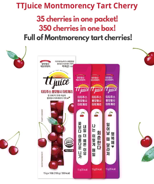 • ✔️KOREA’S No1. Brand Power [1st in consumer satisfaction in the field of Health Functional Foods&Organics Cosmetics] Believe Nature Official Store✔️100% Original Product /Lowest Price Guarantee✔️Haral has been certified.✔️JANG IN JUNG SIN EVERYDAY Makes a Difference! Over 8 Million Sales!(Sales as of 2020)✔️Using only the best singular Montmorency varieties grown in Michigan Traverse City, the "City of Cherries," which accounts for about 70% of the total production of tart cherries in the United States.✔️In particular, the American Montmorency Tart Cherry has been recognized for its effectiveness and efficacy as an SCI(E)-level thesis!✔️TTJuice Montmorency Tart Cherry is manufactured by CherryCentral, the world's leading manufacturer of Montmorency Cherry Concentrates.✔️Cherry Central ensures safe products through strict quality control of the production process.✔️100% Montmorency Tart Cherry, concentrated without even one drop of water✔️At low temperatures, it is concentrated about 6 times higher, so the original aroma and flavor remain the same!✔️[Expiration Date] -1 year and 6 months from the date of manufacture(21.FEBRUARY.2024)