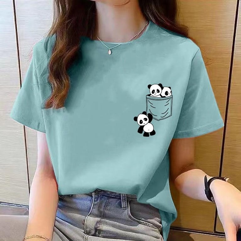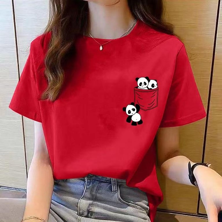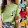 新年衣服女装上衣新款Women Short Sleeve Top Summer New pocket panda Cartoon Printed T-shirt korean fashion women tops  Loose round neck t shirt women