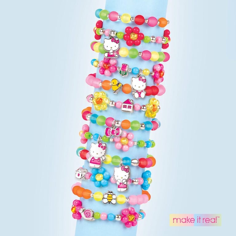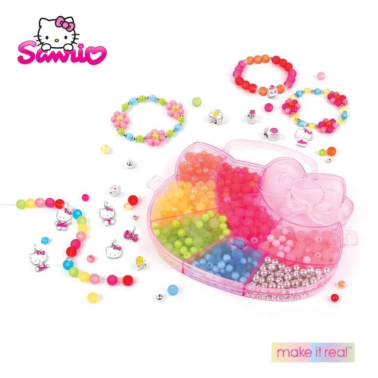 Make your own stunning Hello Kitty bracelets, complete with mini Hello Kitty charms!Continue using the reusable Hello Kitty bead case for your future craft materials and projects!Perfect for every Hello Kitty fan, whether young, or young at heart!Create and customise your own stunning bracelets to wow your friends, or invite them to craft and create with you!Every case contains enough beads to make up to 20 beautiful bracelets. Instructions included in every pack! Read the instructions fully to the end before beginning your craft project. Most of all, have fun!Great activity idea for parties & sleepovers! Contains: 1 x Hello Kitty bead case1 x clear elastic cord (10m)6 x Hello Kitty pendant charms6 x Hello Kitty bead charms693 x assorted beads 1 x sticker1 x instruction sheetWarning: Contains small items. Authentic product. Officially Licensed by Make It Real. Authorised distributor for Make It Real range of products in Singapore.