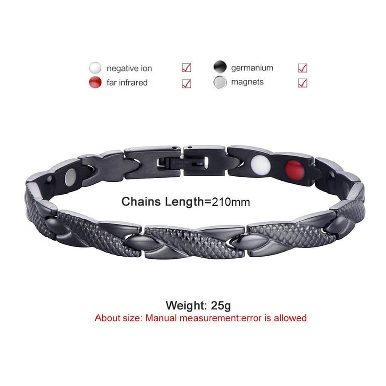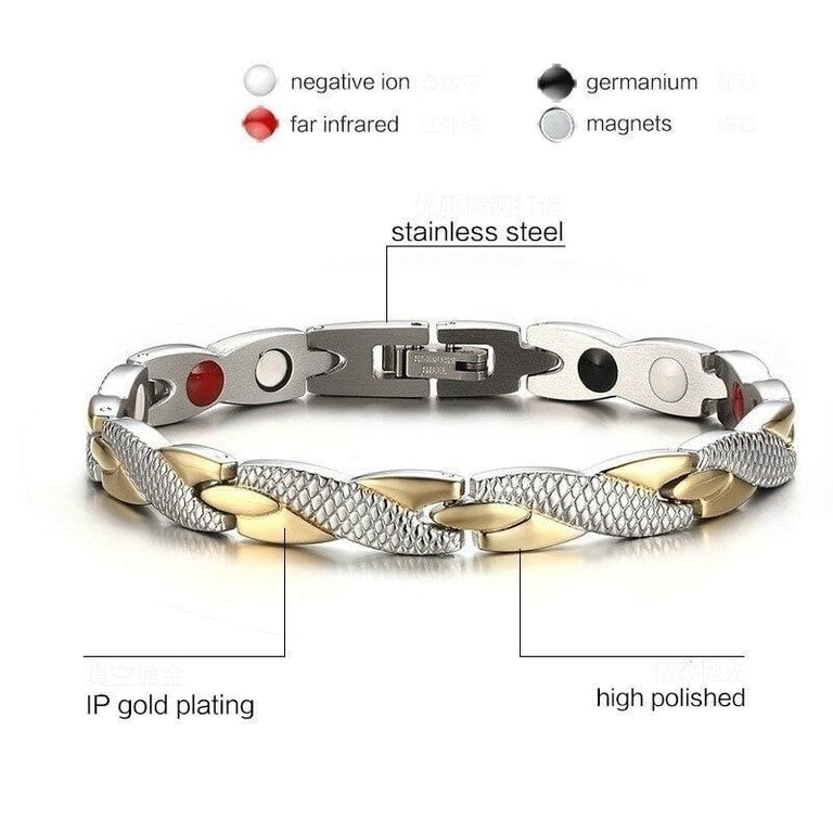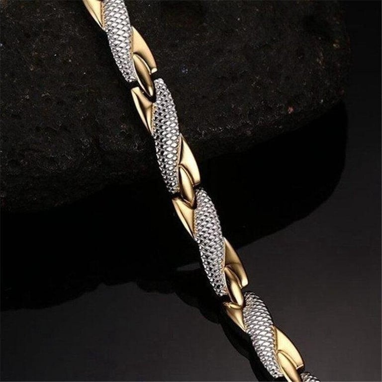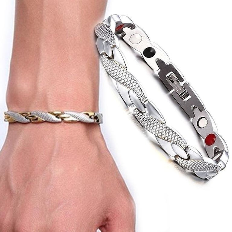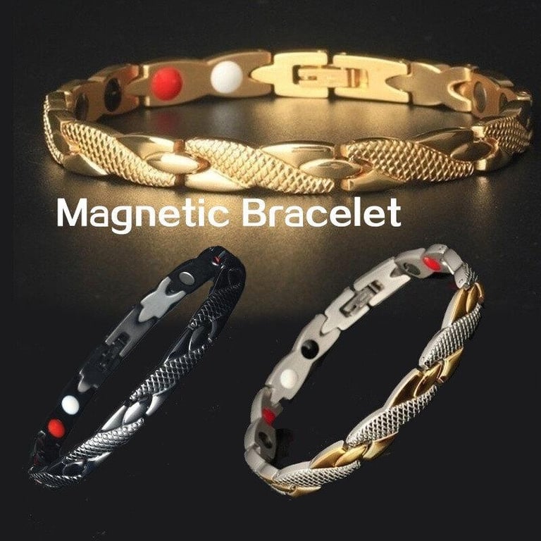 100% Brand New and High Quality\r\nProduct Name:Magnetic Therapy Bracelet\r\nItem Type:Bangle Bracelet\r\nColor:Gold,Silver,Black,Gold&Silver\r\nMaterial:Stainless Steel\r\nSize:As shown\r\nGender:Men\r\nStyle:Fashion