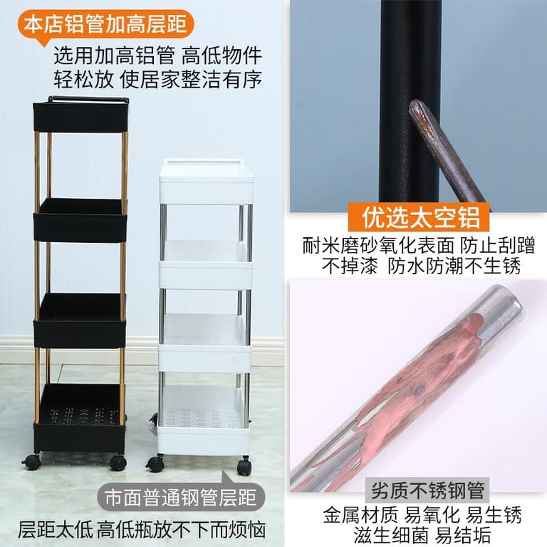 Narrow Trolley Storage Rack Kitchen Bathroom Bathroom Multi-Layer Floor Mobile Bookshelf Snack Storage Rack Heightened