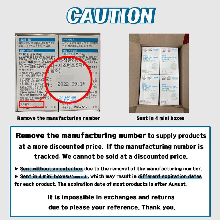 >Sent in 4 mni boxes (30pcs x 4),which may result in different expiration dates