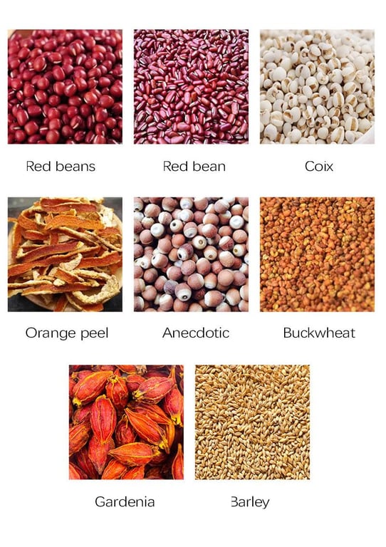 Ingredients: red bean, adzuki bean, coix seed, orange peel, barley, Euryale ferox, tartary buckwheat and gardenia