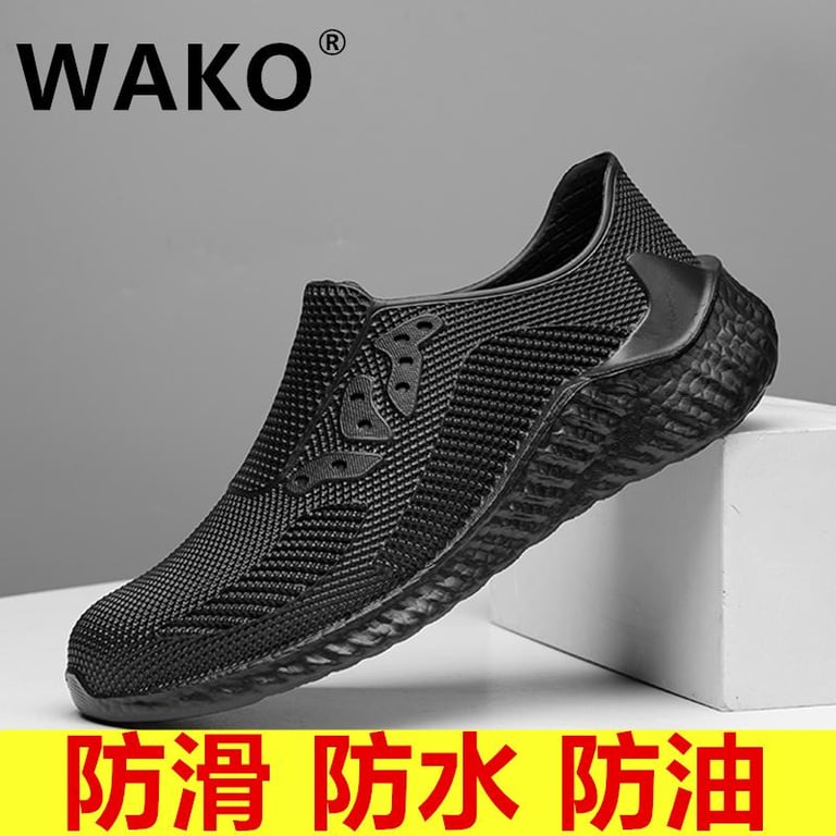 Wako Slip-on Waterproof Oil-Proof Kitchen Work Shoes Chef Shoes Fashion Short Tube Rain Boots Lightweight Special Rubber Shoes