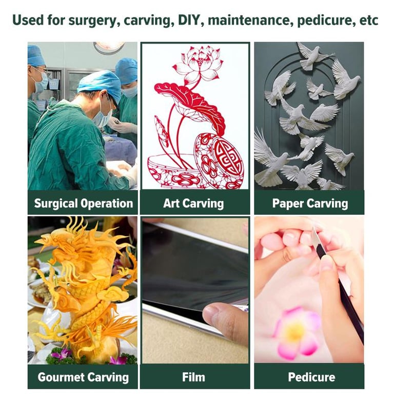 【Ready Stock】40Pcs 11# 23# Scalpel Blades Carbon Steel Sculpting Blade +2Pcs Handle DIY Cutting Tool Mobile Phone Computer PCB DIY Repair Wood Carving Pen Carving Hand Tools Set